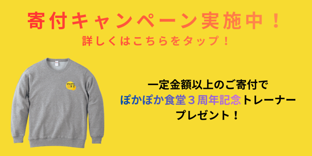 ぽかぽか食堂では、継続的な活動を可能とするために寄付の受付を行っております。